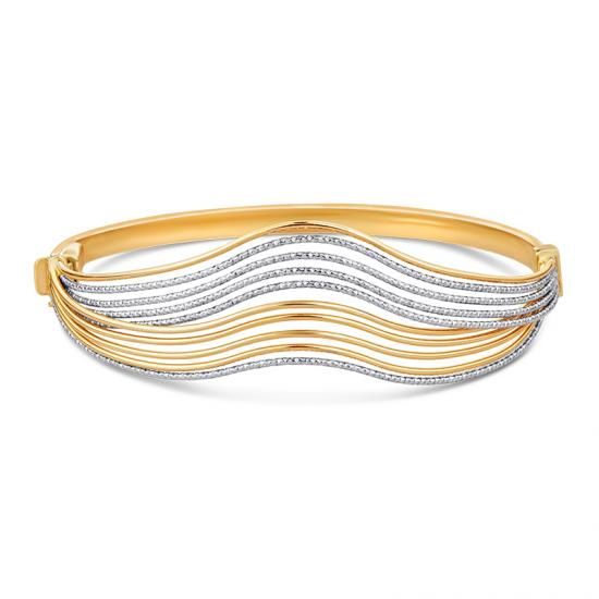 14K Gold Two Tone Wave Bangle